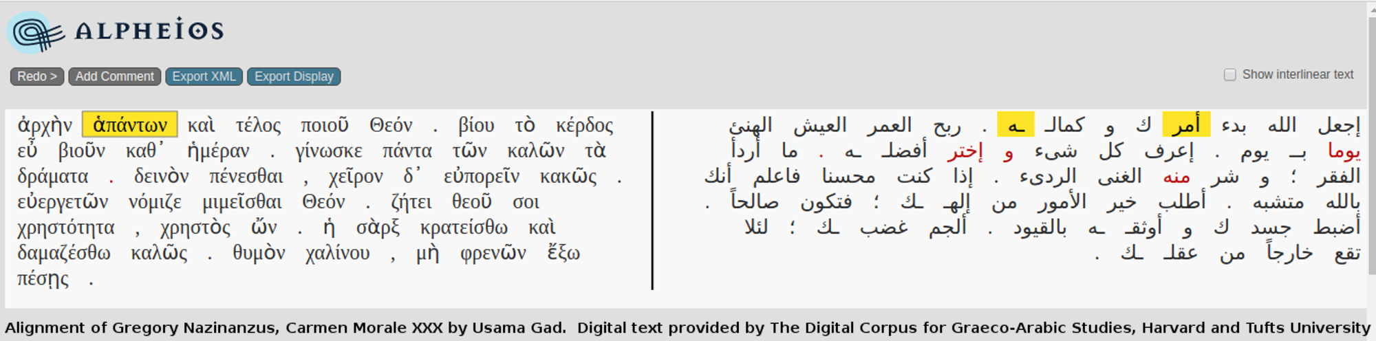 These corpora provide examples of texts that have been aligned using the Alpheios Alignment Editor.